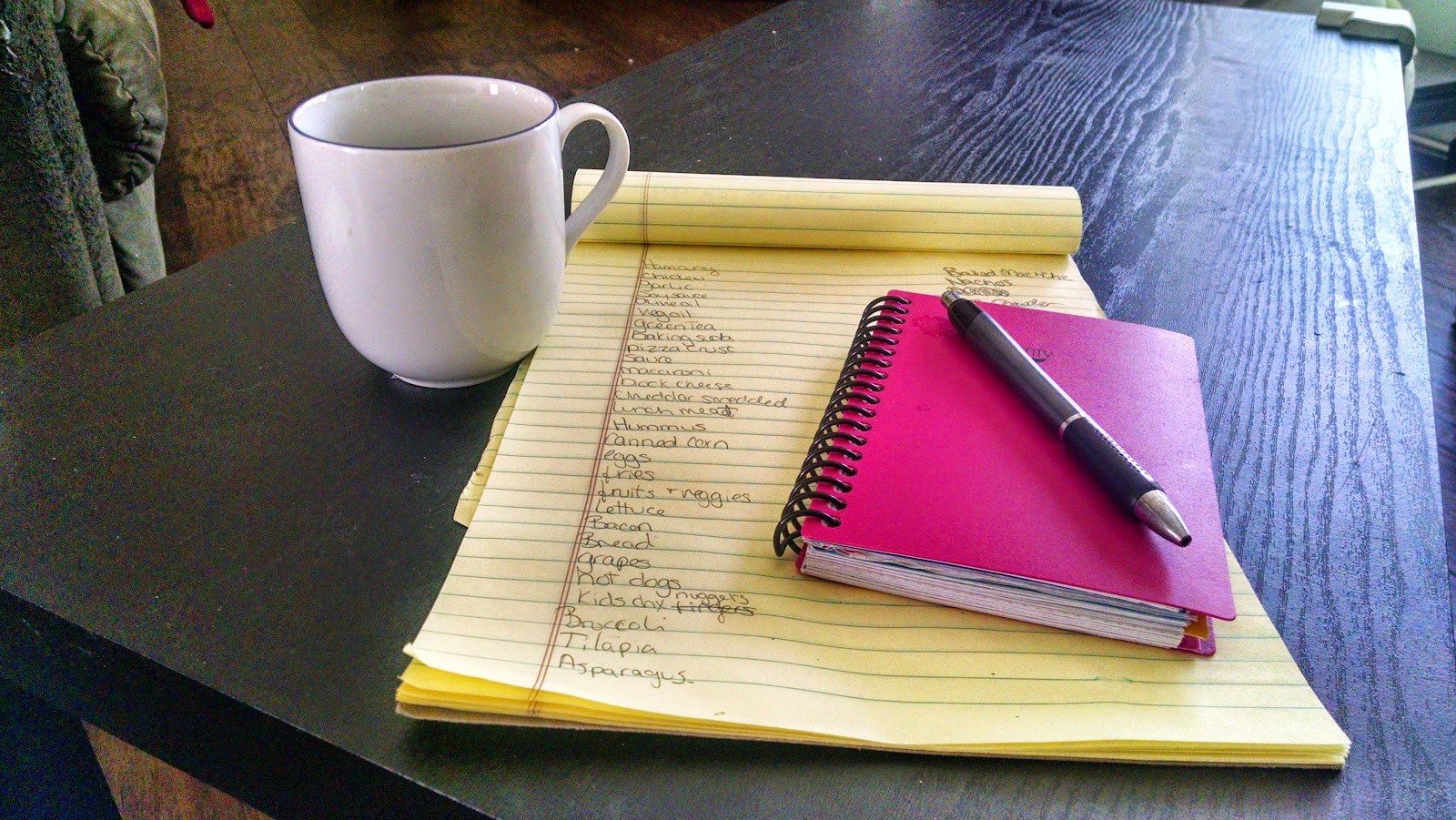 To start with you should know I like lists. A lot! So I have dozens of yellow legal pads all throughout the house and I highly recommend this because I hate hunting for paper every few hours. So I start by making my meal list.